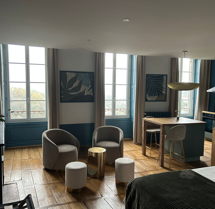 Offrez-vous une expérience unique dans cette suite spacieuse avec vue sur la vallée du Bandiat, idéale pour un séjour nature en Dordogne.